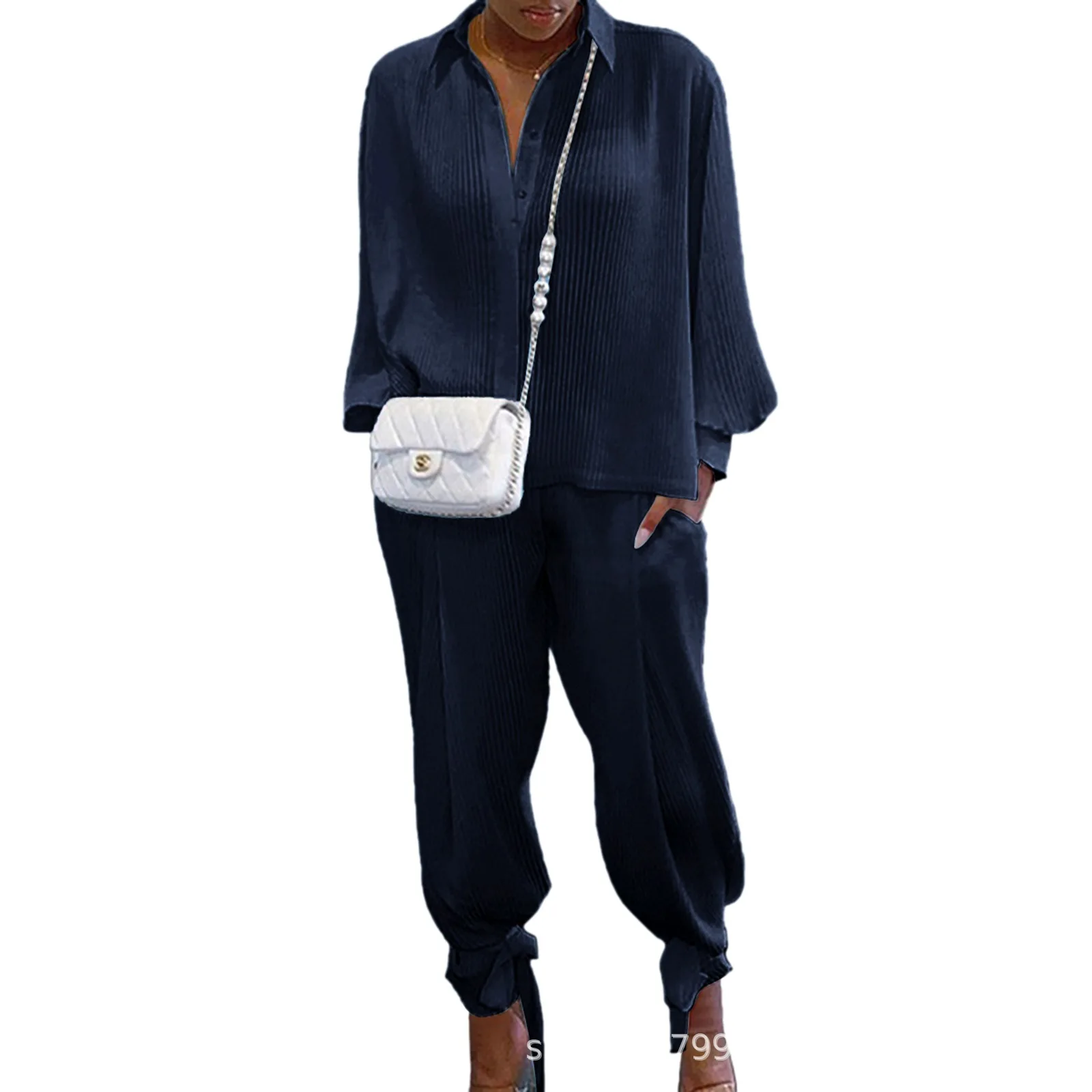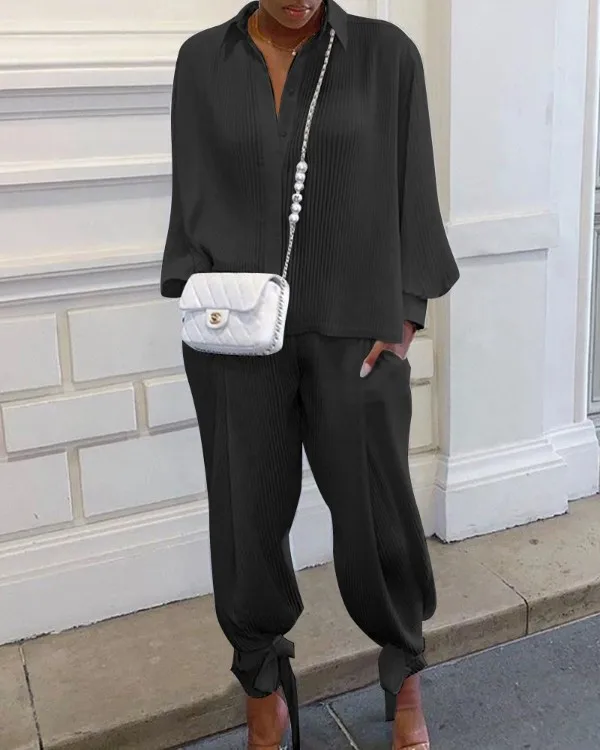 Classic Solid Shirt Pants Set Women Casual Loose Long Sleeved Lapel Elastic Waist Two Piece Suit 2025 New Summer Street Outfit